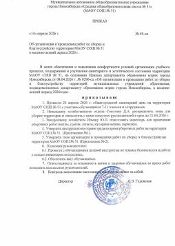 Об организации и проведении работ по уборке и благоустройству территории МАОУ СОШ № 51 в весенне-летний период 2026 года.